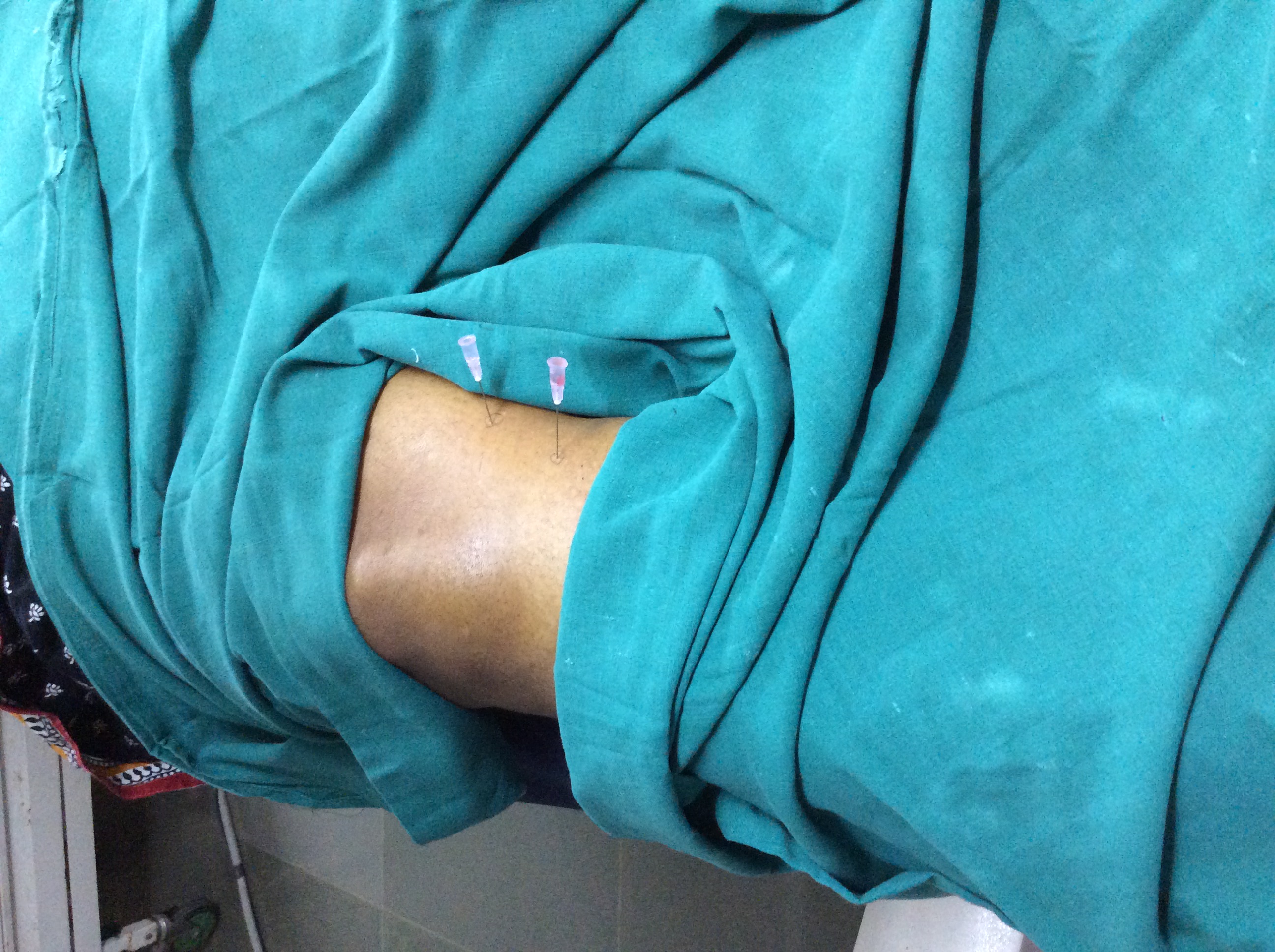 - The patient lies face down on an x-ray table and the skin over the neck, mid-back, or low back is well cleaned.